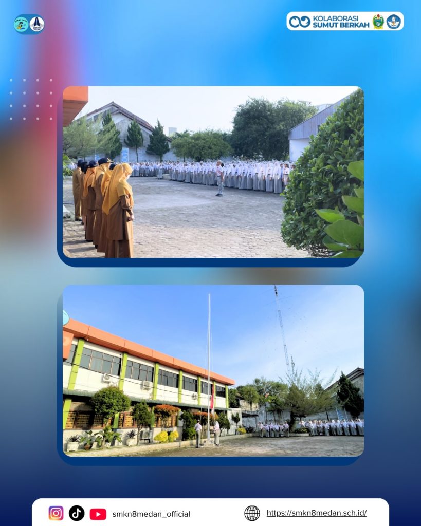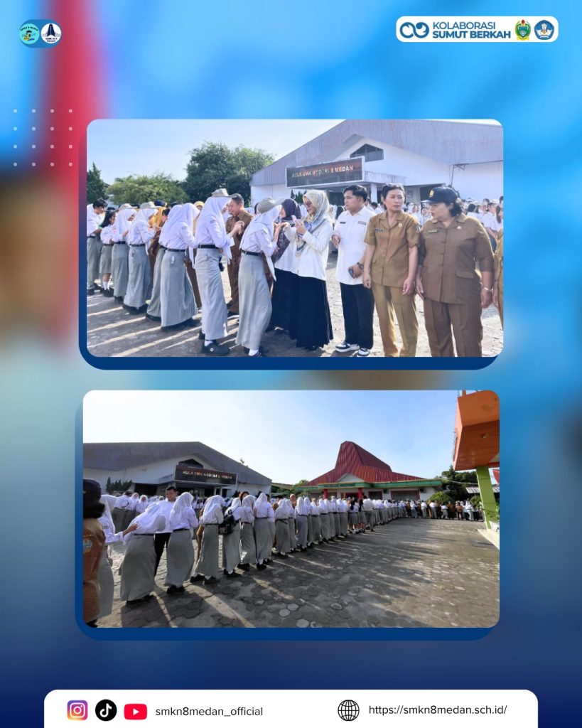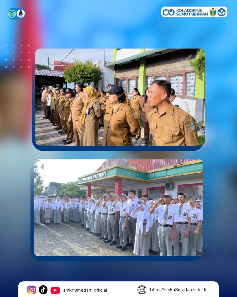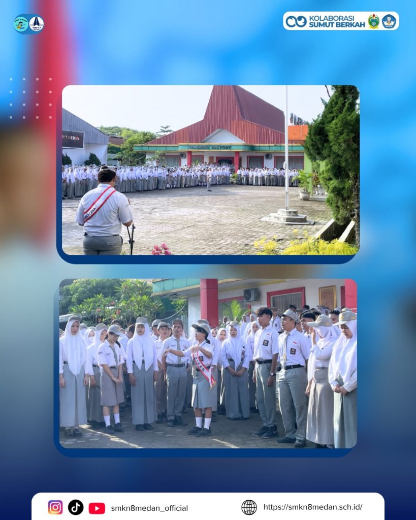 Mengawali hari pertama masuk sekolah, SMK Negeri 8 Medan melaksanakan upacara bendera perdana sebagai bentuk kedisiplinan, tanggung jawab, serta menumbuhkan rasa cinta tanah air. Seluruh siswa, siswi, dan dewan guru mengikuti kegiatan ini dengan penuh khidmat.