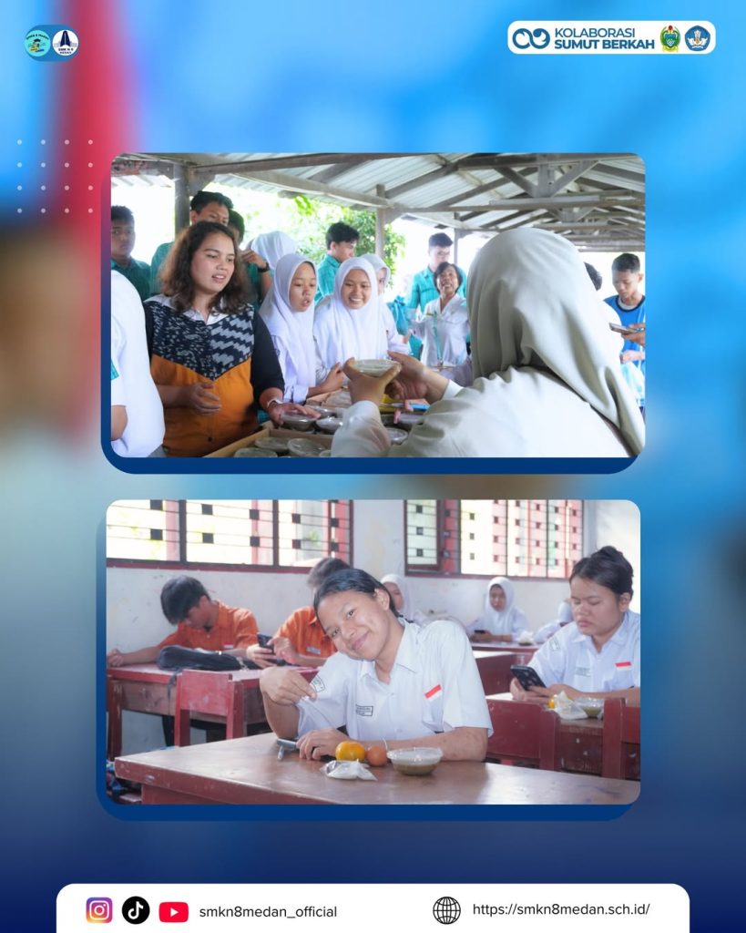 Hari ke-4 pelaksanaan Program Makan Bergizi Gratis (MBG) di SMK Negeri 8 Medan berlangsung dengan tertib dan penuh antusias. Para peserta didik tampak semangat menerima dan menikmati hidangan yang telah disiapkan sebagai bentuk dukungan terhadap pemenuhan gizi dan kesehatan selama mengikuti proses pembelajaran di sekolah.